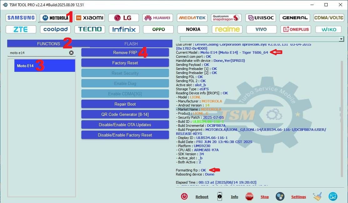 از بخش Model مدل Moto E14 را انتخاب کنید.