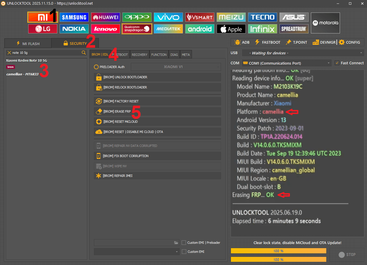 برای حذف اکانت شیائومی این مدل، طبق روش زیر عمل کنید. گزینه EDL RESET / DISABLE MI cloud را بزنید.